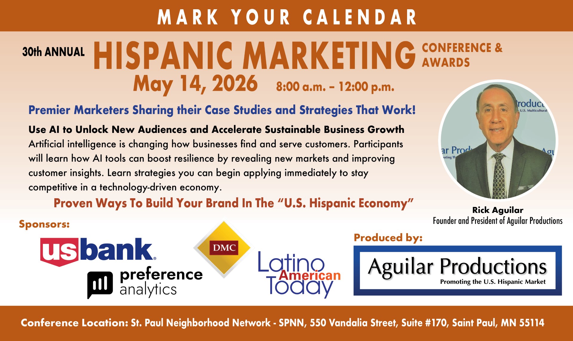 We are excited to present the 30th annual Hispanic Marketing Conference and Awards. We are presenting this event "Live" and in person.